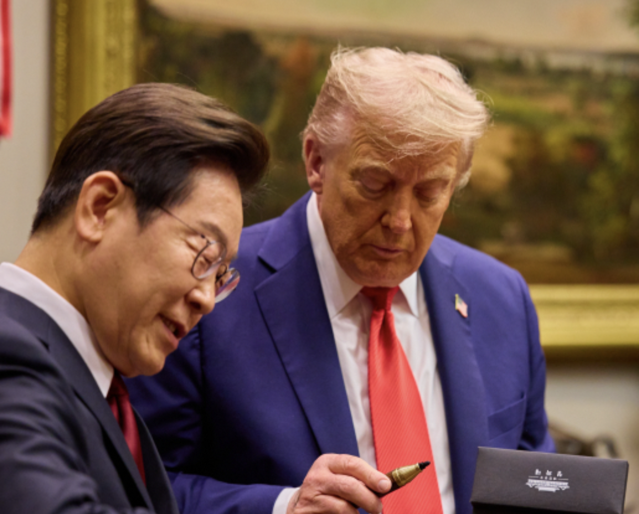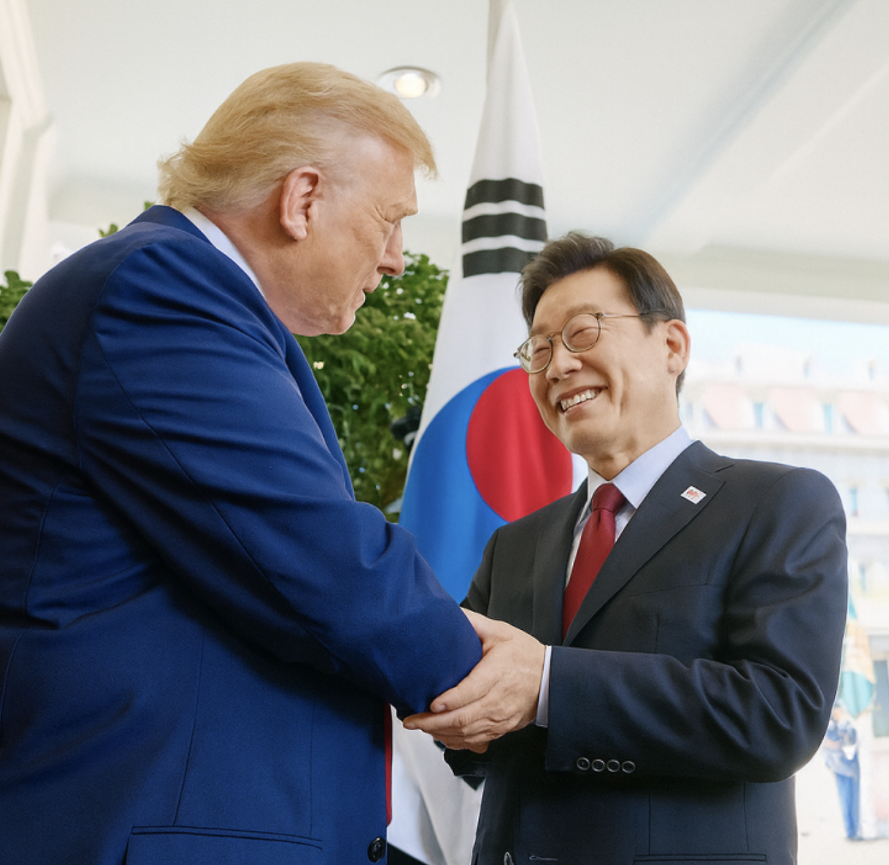 - 이재명 대통령은 오벌오피스의 황금 장식을 언급하며 대화를 자연스럽게 열었고, 트럼프 대통령은 밝은 미소로 호응했습니다.